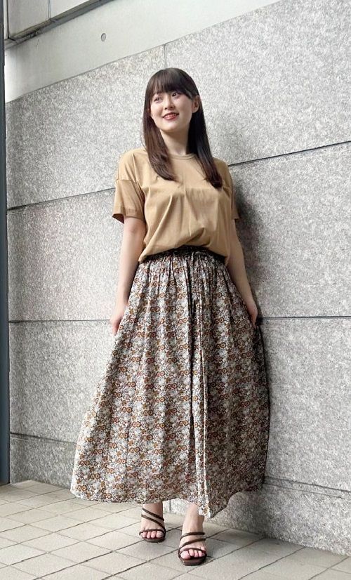 花柄ギャザースカート×プリマザイムTシャツ