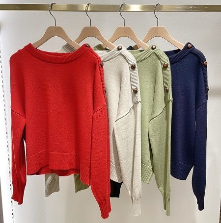 肩ボタンショート丈ニット