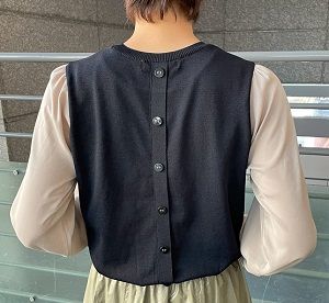 袖サテンバック釦プルオーバー