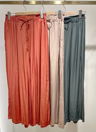 ウエストのギャザーでリラックス感のあるワイドパンツ。