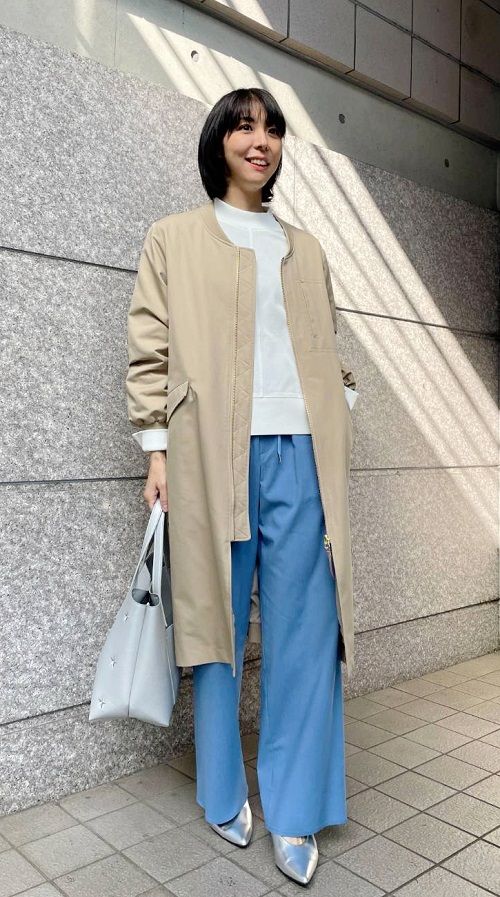 MA-1風ワークコート×モックネックカットソー×ワイドパンツ