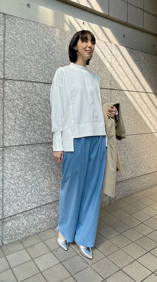スリット付きの袖口が可愛いく、こなれ感のある着こなしを楽しめます♪