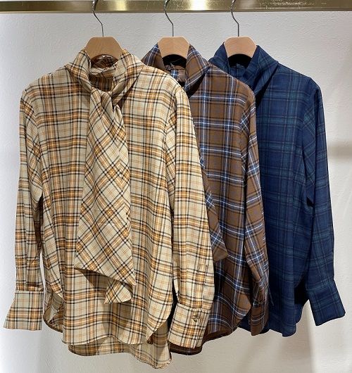今回は、秋に人気のチェック柄ブラウスのコーディネートを、ご紹介致します。