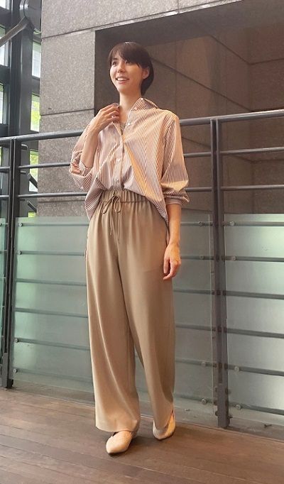 ロンストシャツ×ドロストワイドパンツ