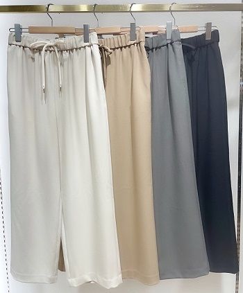 ウエストのドロスト紐のアクセントがおしゃれな、ワイドパンツ!