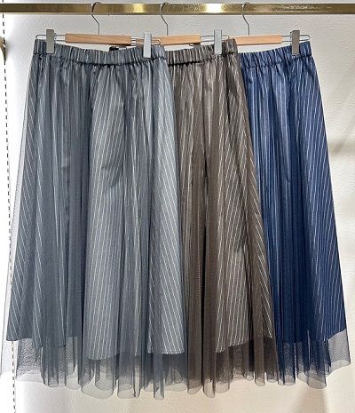 ストライプ柄にチュールを重ねたトレンド感のあるスカート。
