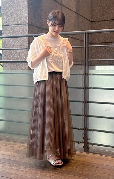 アイスパーカー×ロゴTシャツ×チュールスカート