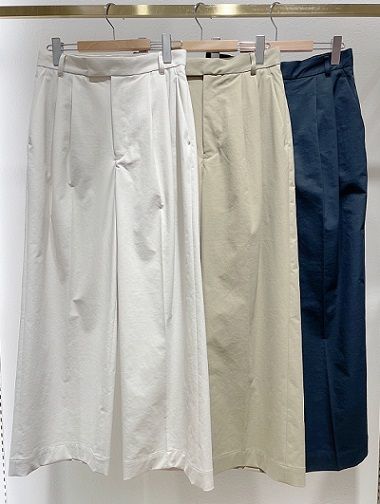 チノパンのような風合いのウエスト2タックワイドパンツ。