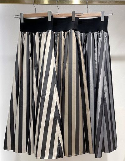 深みのある色合いが可愛い、ストライプ柄のウエストリブスカート。