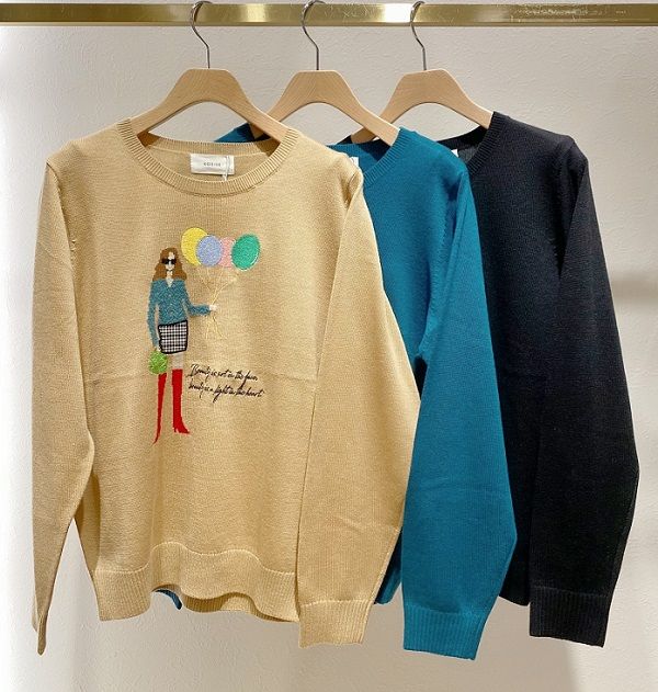 ポップな柄が可愛いニット。