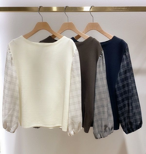チェック柄の袖は、ほんのりシアーになっていて女性らしい印象に。