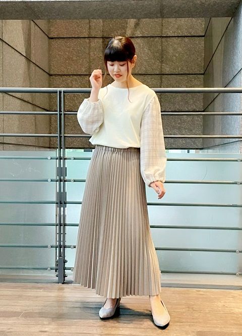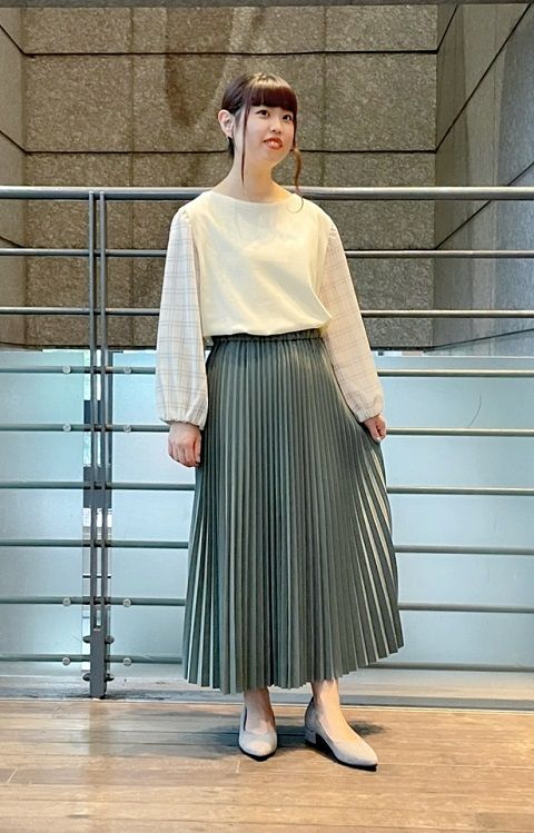 動きのあるプリーツがコーディネートを引き立ててくれます。