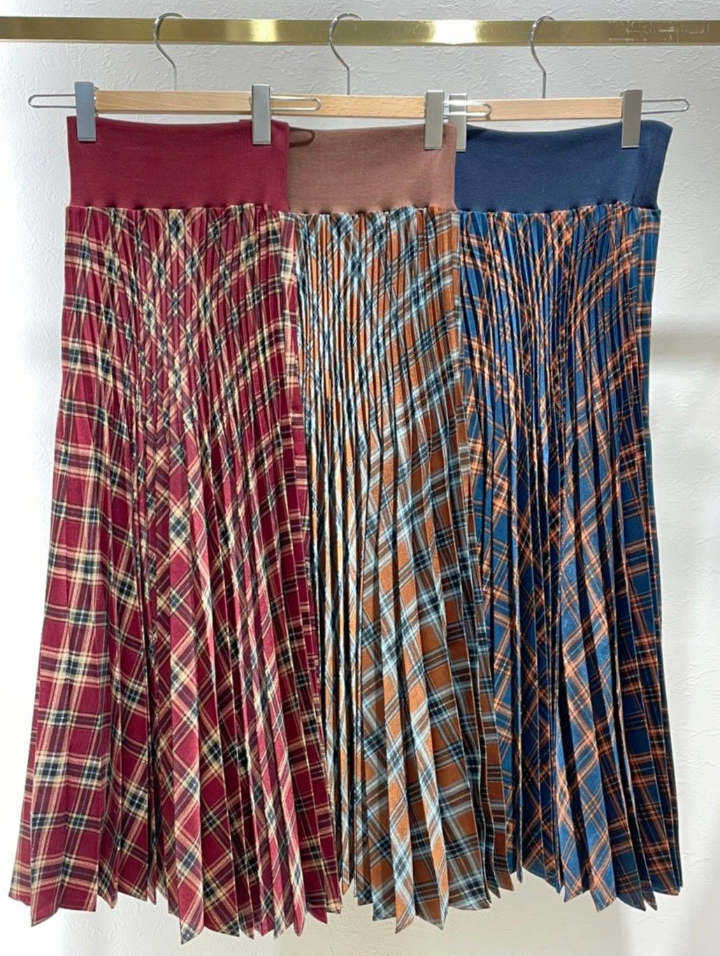 チェックリブ付きプリーツスカート