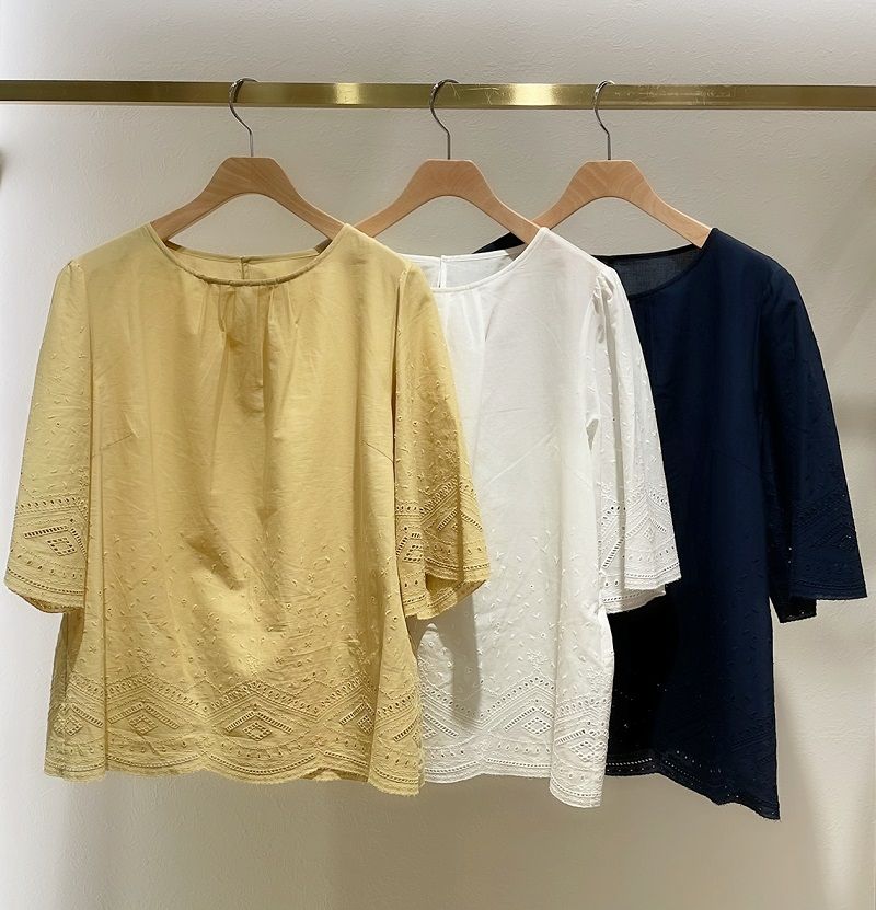 かわいい刺繍のレースが施された、軽やかなブラウス。