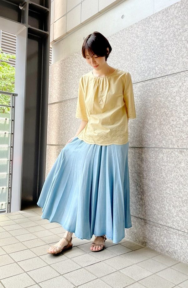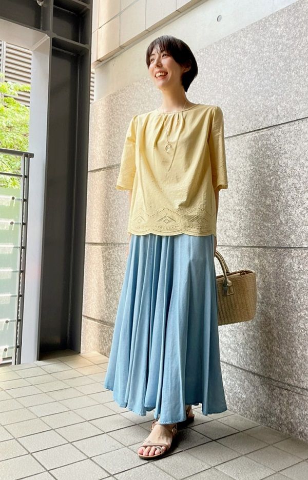 今回は夏の爽やかなレースブラウスのコーディネートをご紹介いたします。