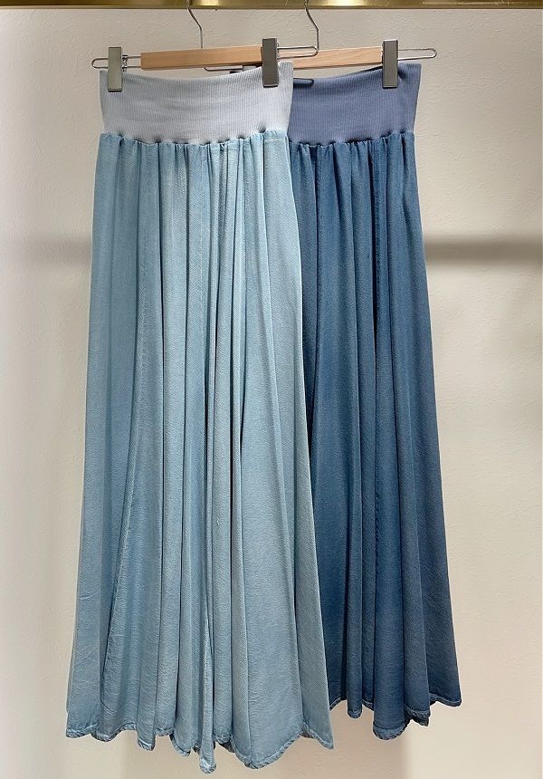 春から継続して大人気のレーヨンデニムロングスカート。