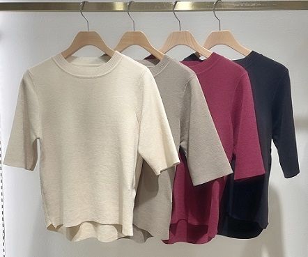 シンプル&コンパクトでシルエットが綺麗な五分袖ニット。