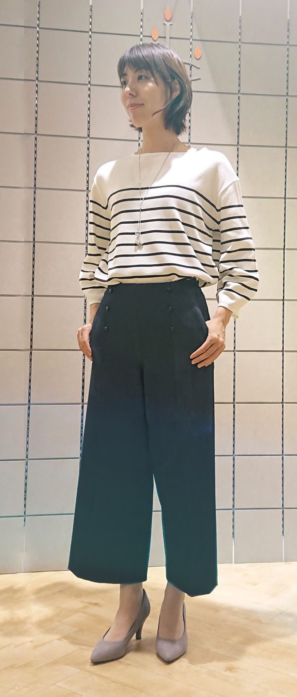 | 今回はボーダーニットと合わせたフレンチトラッドスタイルに。 | |||||||