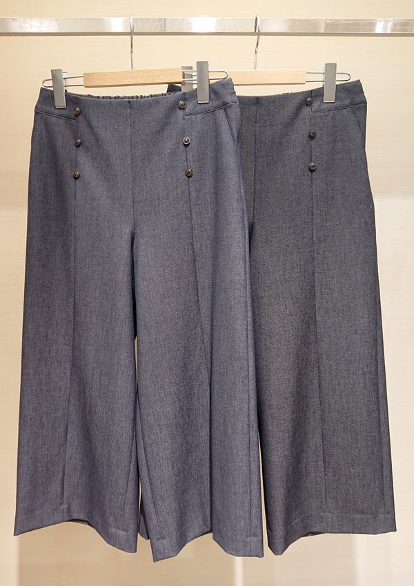 | 控え目なボタンが可愛いデニム風ガウチョパンツ。 | |||||||