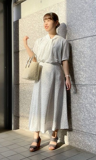 小さめのドット柄のシンプルなフレアスカートなので