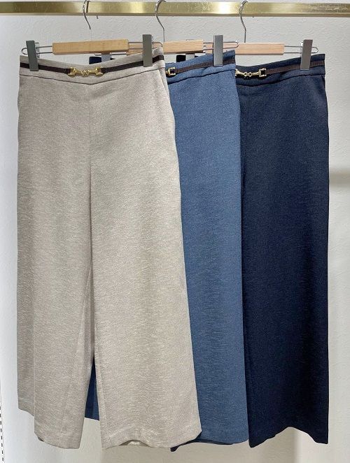 麻調オックスビット付きワイドパンツ