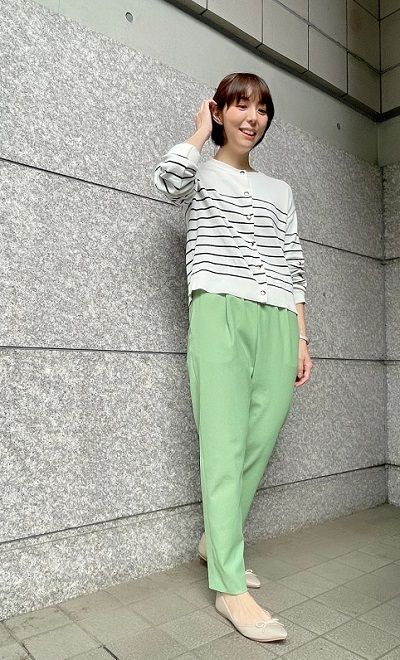 爽やかで発色のきれいなテーパードパンツ。
