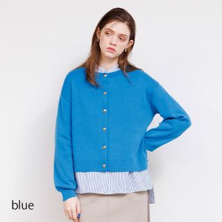 ポリコットン金ボタンクルーカーディガン