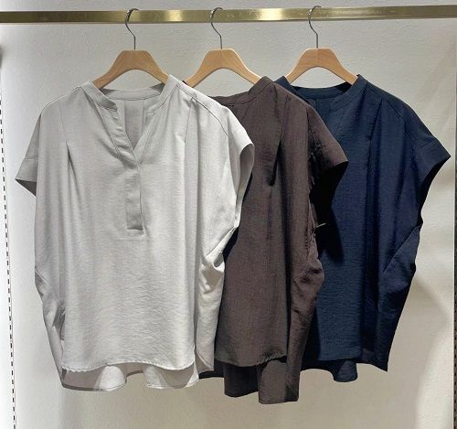 ブラウスはスキッパーネックで、顔周りがスッキリとシャープな印象に.:*☆