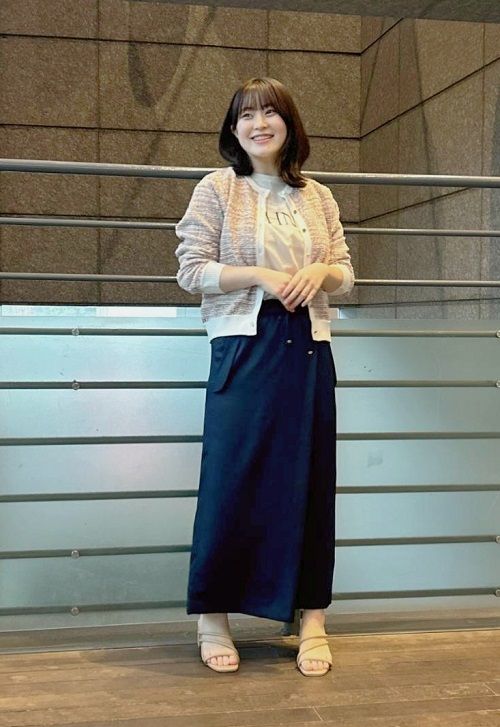 ジャケット風カーディガン×タイトスカート×ロゴロンT