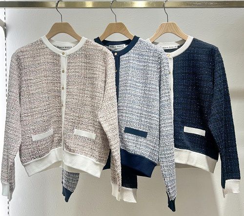 華やかなミックスツイードのカーディガン。