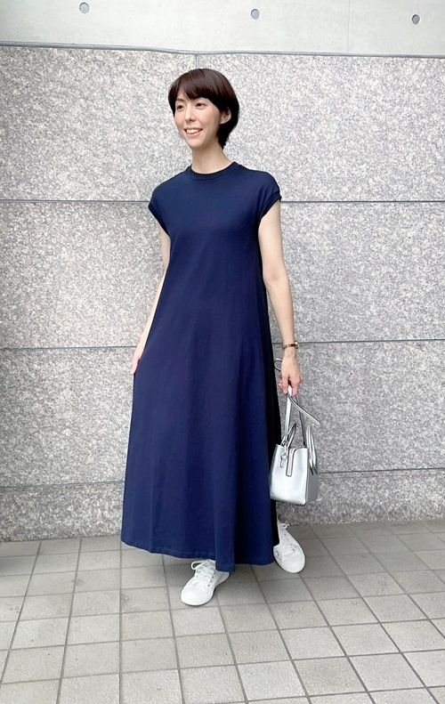 Aラインのシルエットがかわいい、シンプルで上品なワンピース。