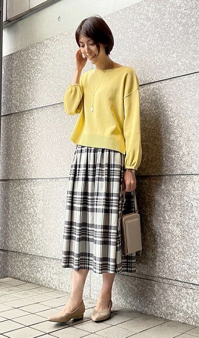 ミラノリブニット×チェックリバーシブルスカート
