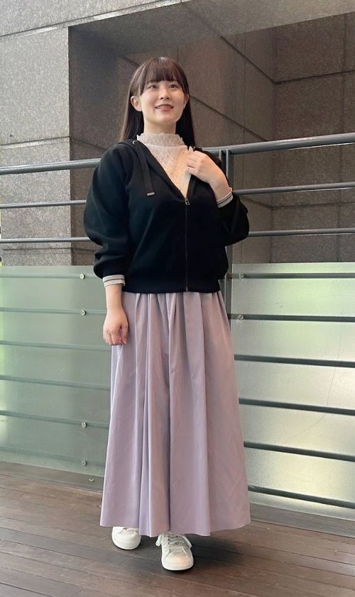 ニットパーカー×リバーシブルスカート×レースプルオーバー