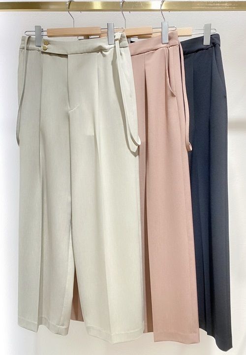 細めのストラップで大人っぽく着こなせるサスペンダー付きワイドパンツ♬︎