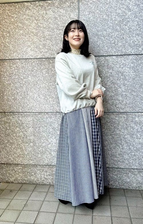 ギンガムチェックスカート×ラメ裏毛プルオーバー