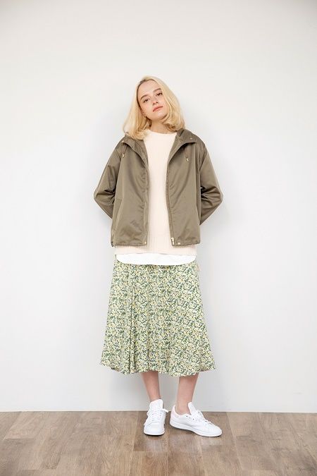 デイリーユースしやすいマンパーブルゾンに小花柄スカートを