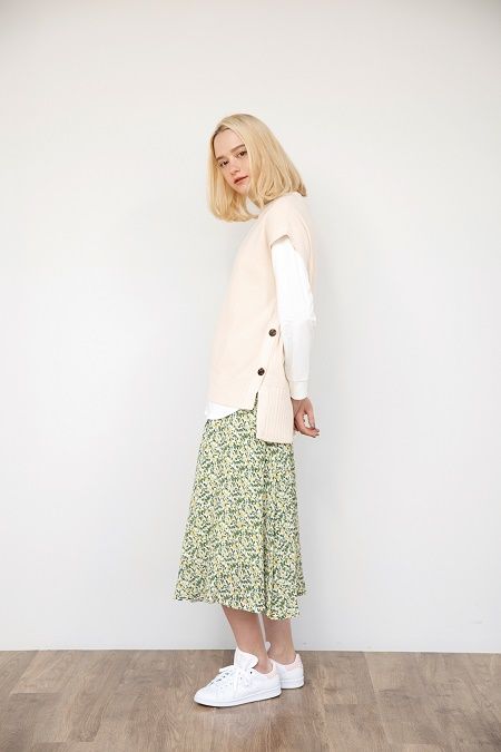 春らしいキレイな色の小花プリントスカート。
