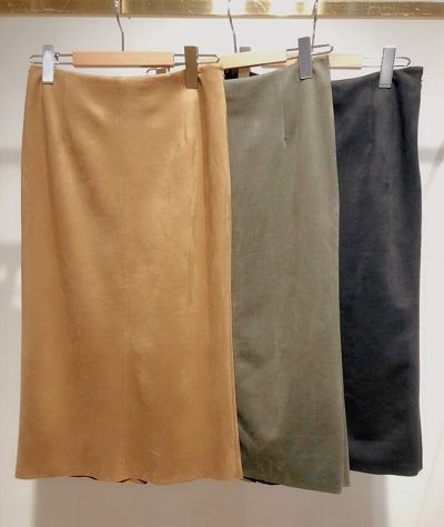 ストレッチスエード素材のシンプルなミモレ丈タイト。