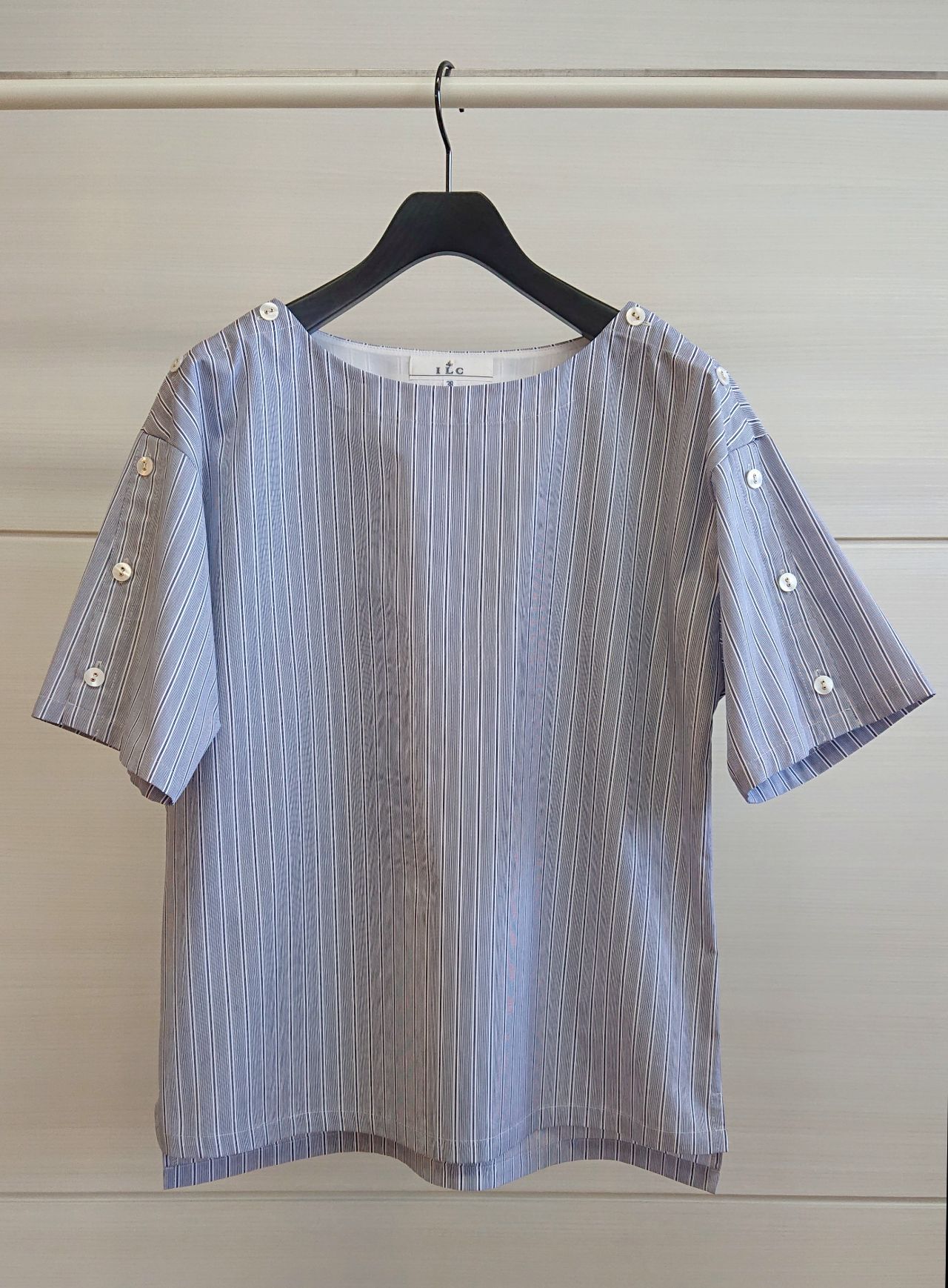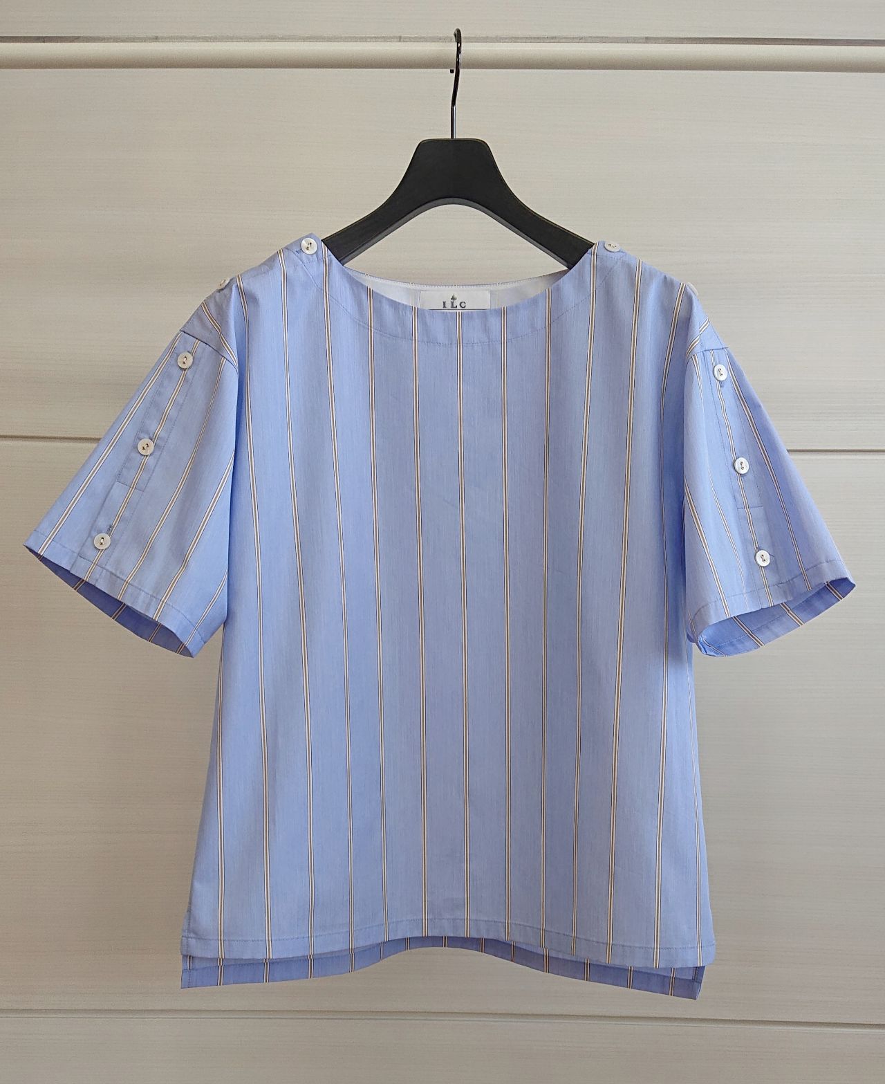 ストライプ袖ボタンブラウス