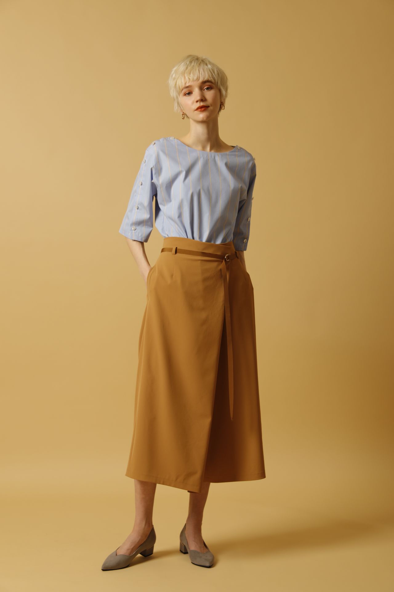 ベルト付ラップ風ガウチョ