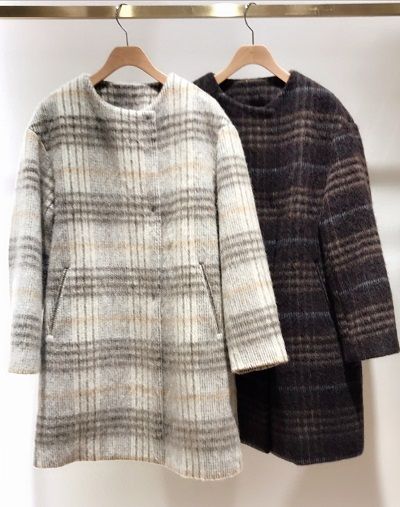 シャギーチェックノーカラーコート