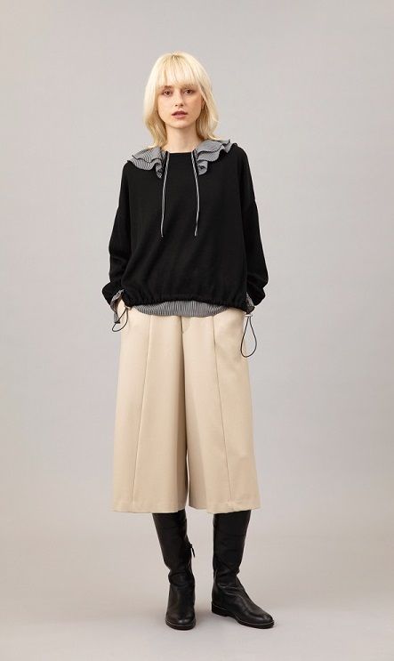 トレンドのフリルカラーを取り入れたレイヤードスタイル。