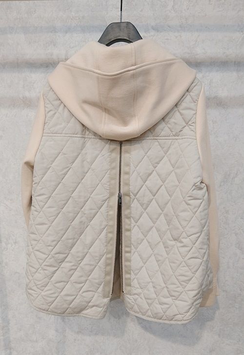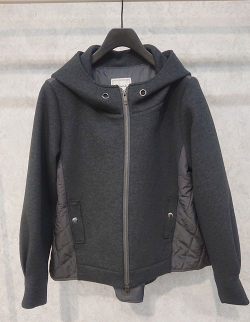 後ろ身頃をキルティングで切替えたショートフーディ。
