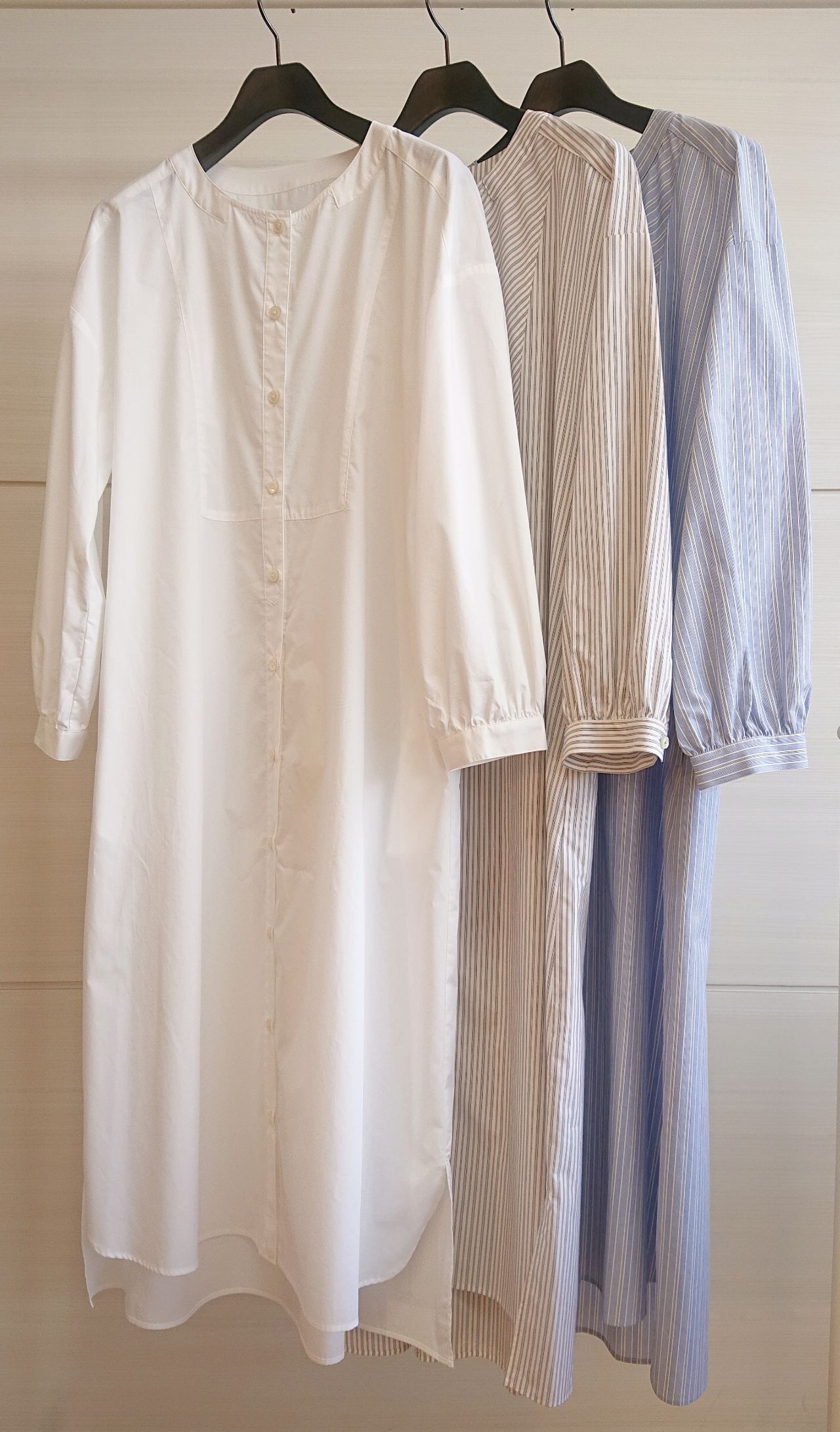 ノーカラーシャツワンピース(白のみ)