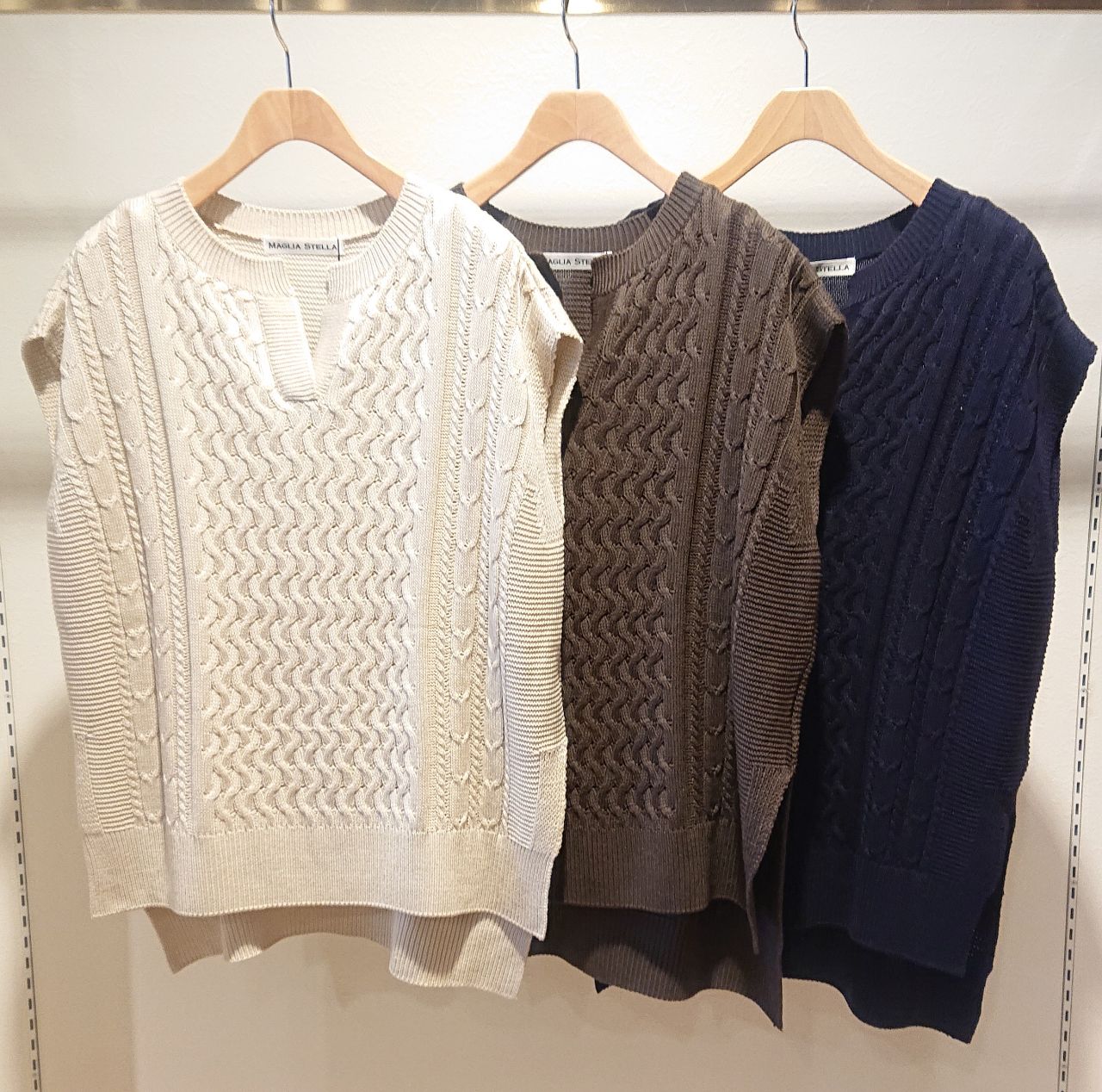 編地が可愛いゆるニットベスト。
