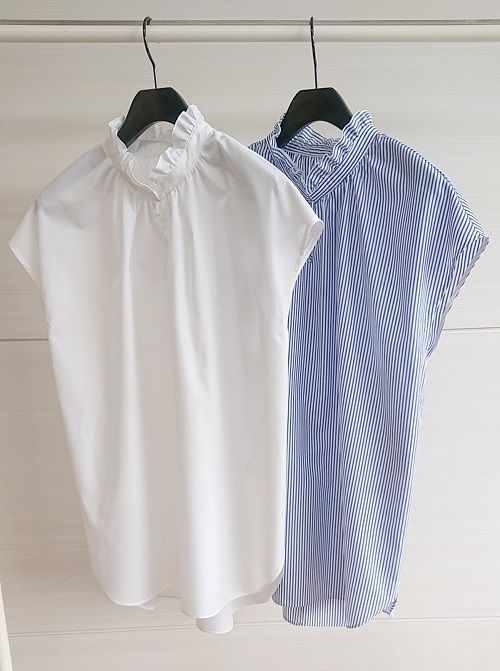 春も人気だったスタントフリルのチュニック丈ブラウスを