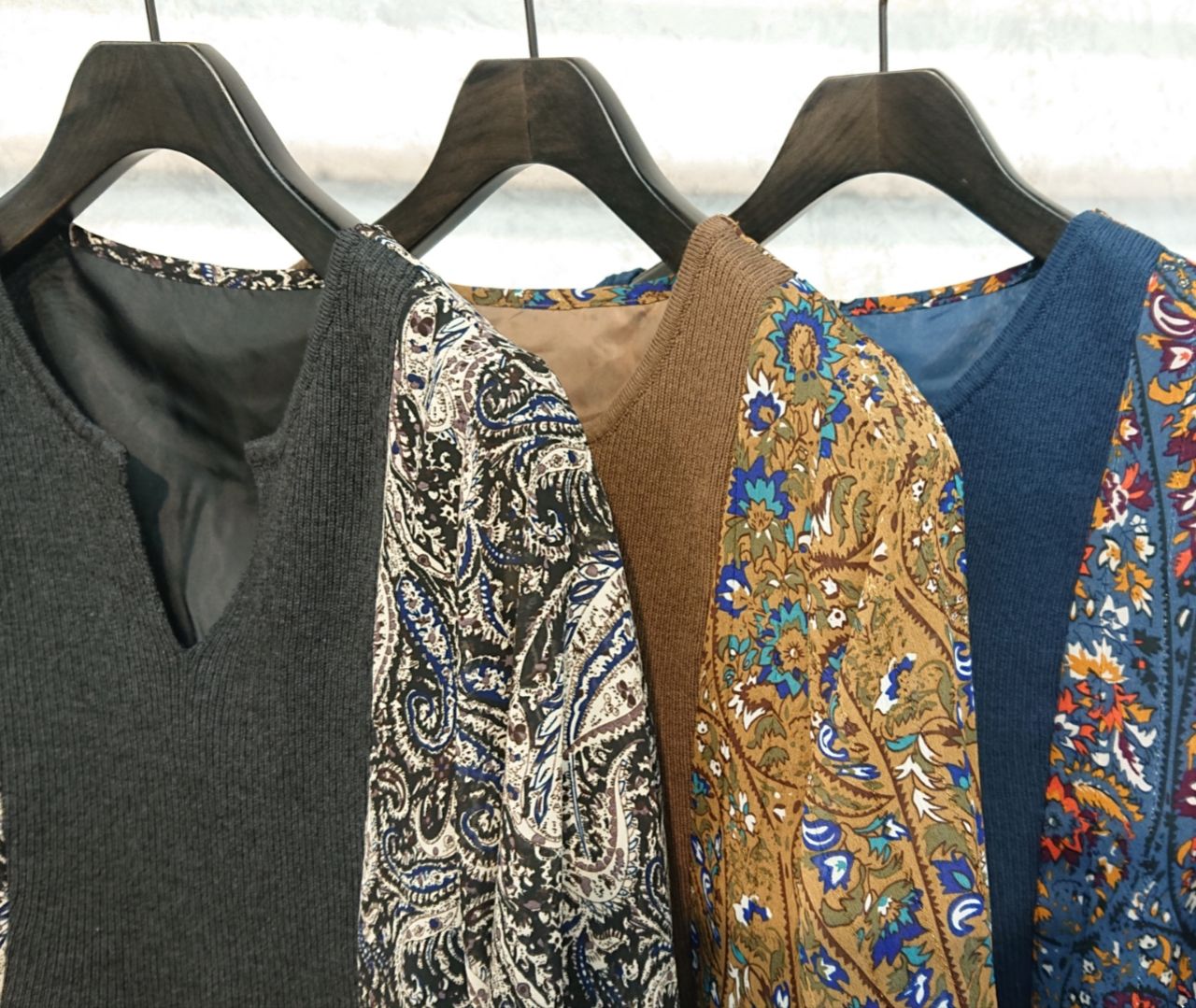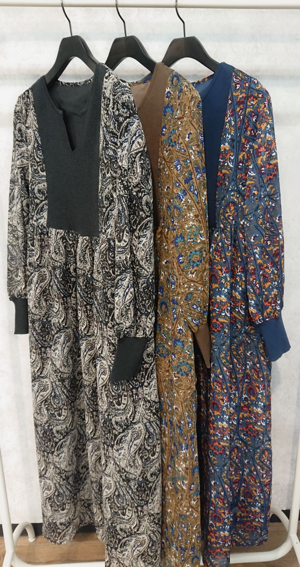ペイズリー×ニットカフタン風ワンピース
