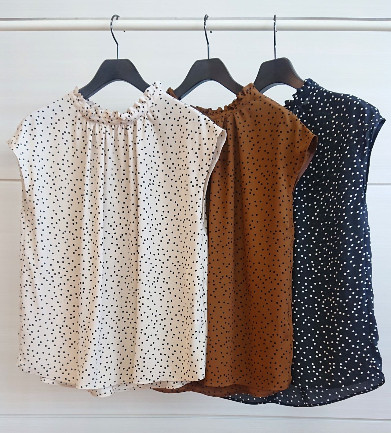 ドットフリルネック前後2WAYブラウス