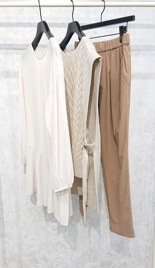 ニットベストに合わせてちょっぴり甘さをプラスして。