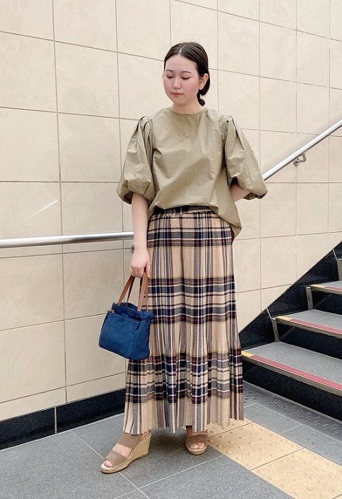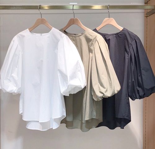 今年トレンドのバルーン袖のブラウス。